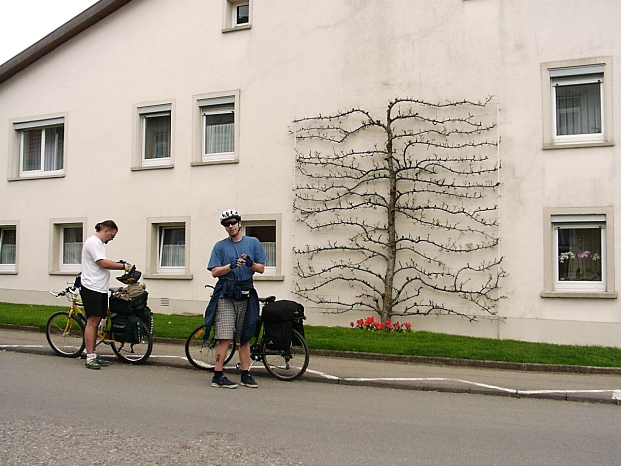 látom, az eredeti tervekhez képest máris szerényedtek ("legalább Ausztriáig hazajutunk biciklivel"), ami bölcsességet és éleslátást tükröz. szerintem már a bajor sörkertekig eljutni is gyönyörű teljesítmény lesz, onnantól sok magyar kamion jön hazafelé, azok a bringákat is el tudják hozni. :-) Jó utat!