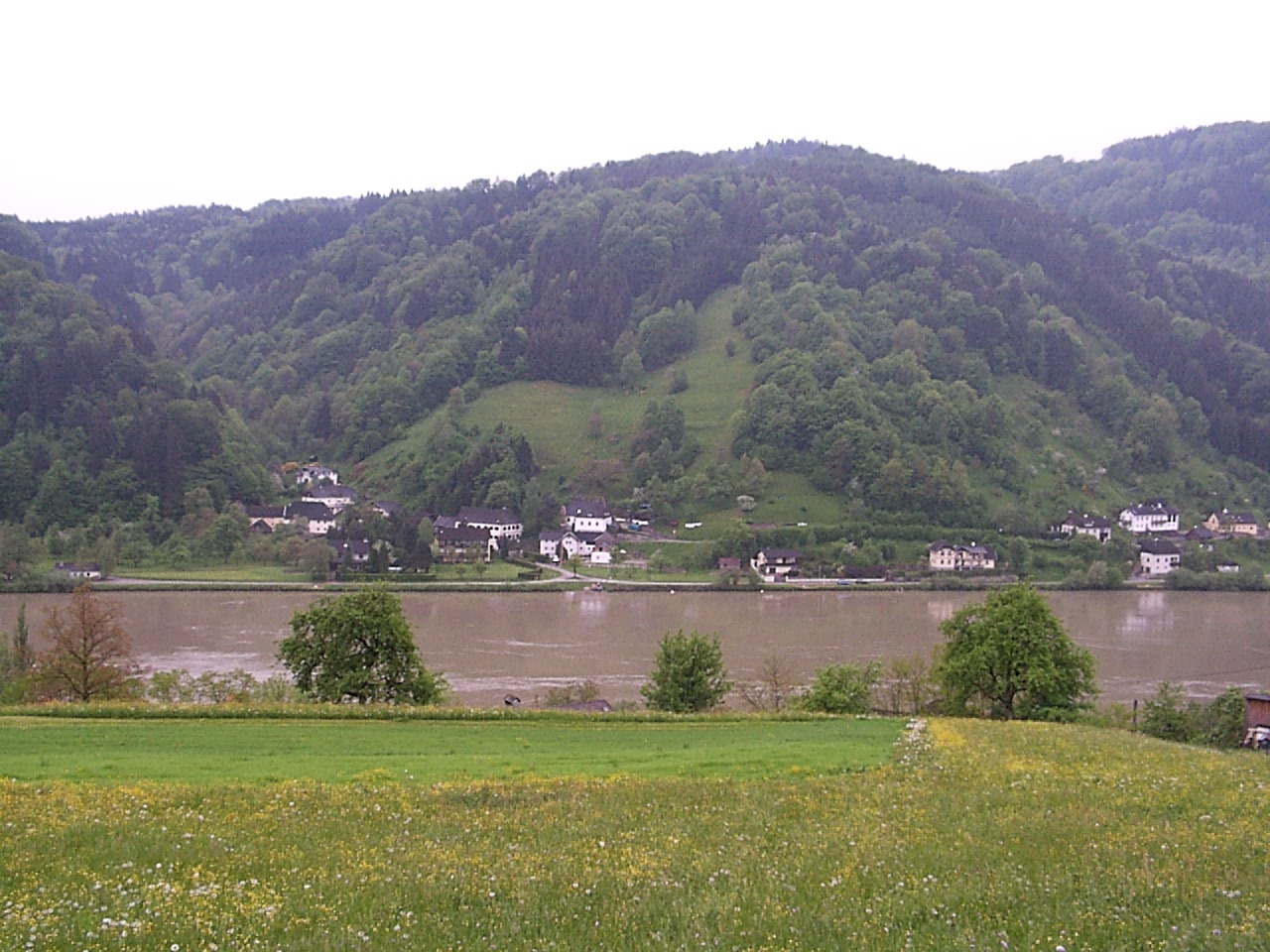 itt keveredtunk at nagynehezen a tulpartra (460m szeles mar a duna), mert az uticelunk tulln, az pedig a jobb parton van. egy kis kertek kozotti bolyongas utan sikerult ismet ra talalni a bringautra, de nagy pechunkre beleszaladtnk egy nagy felho szakadasba. balra a duna, jobbra az autopalya... nem volt mas csak elore... de mielott teljesen elaztunk volna sikerult egy aluljaro ala bemenekulni. az eso elcsendesedtevel eszpee elindult szallast keresni. sikerult is 200atsert talalni. most jelenleg epp egy vendegloben ulunk, megvacsoraztunk, es epp egy evoverseny szemleloje vagyok. aszem ebbol csak en johetek ki gyoztesen. ; ))) a fiuk mar a masodik desszertnel tartanak. Lanyok! itt nem lesz fogyokura ; )