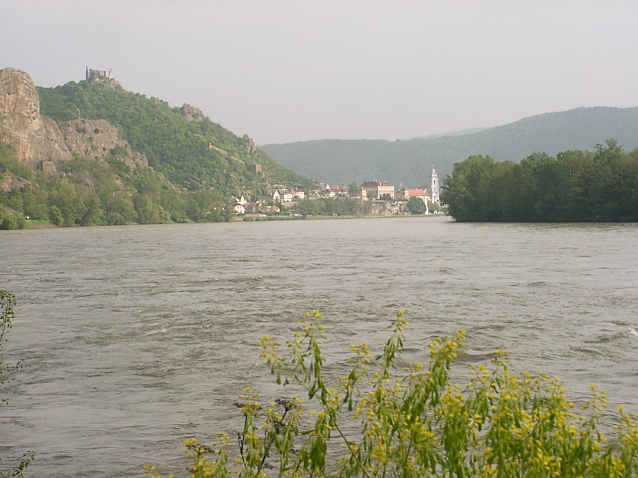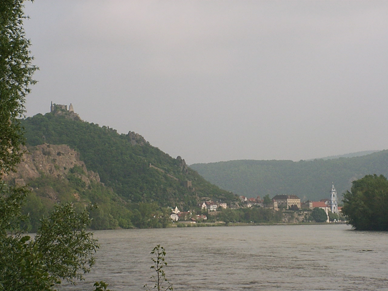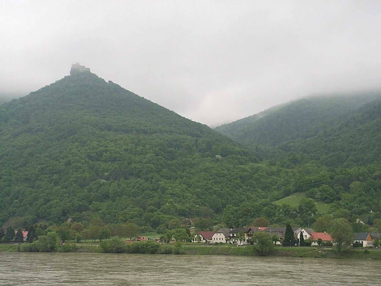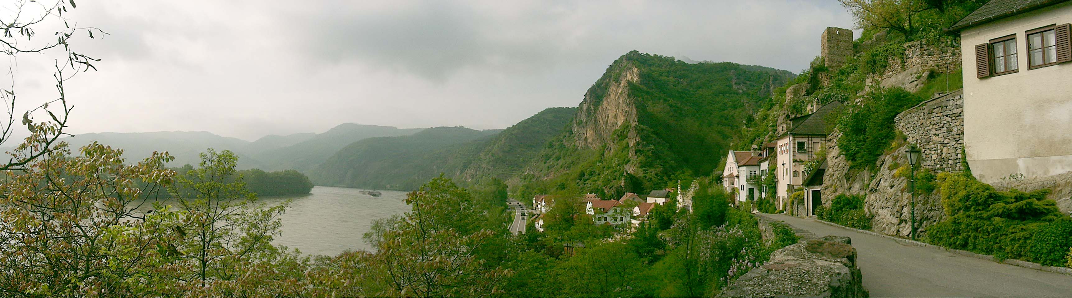 ebed utan valahogy eltokoresztuk az idot, de talan nem veletlenul... a Melk es Krems kozotti szakasz talan az egyik legszebb resze a dunamenti turanak. A folyo ket partjan magas, sziklakkal teli hegyek emelkedtek. a baloldalon a hegybe kovekkel kialakitott sziklateraszokon szolot termelnek. a kis varoskak egymast erve kovettek egymast. a hegytetokon varromok illetve templomok emelkedtek a magasba. nehany eleg misztikusan nezett, ki az alacsony felhokbe burkolodzva. bar kremshez kozeledve lassan a nap is kisutott...