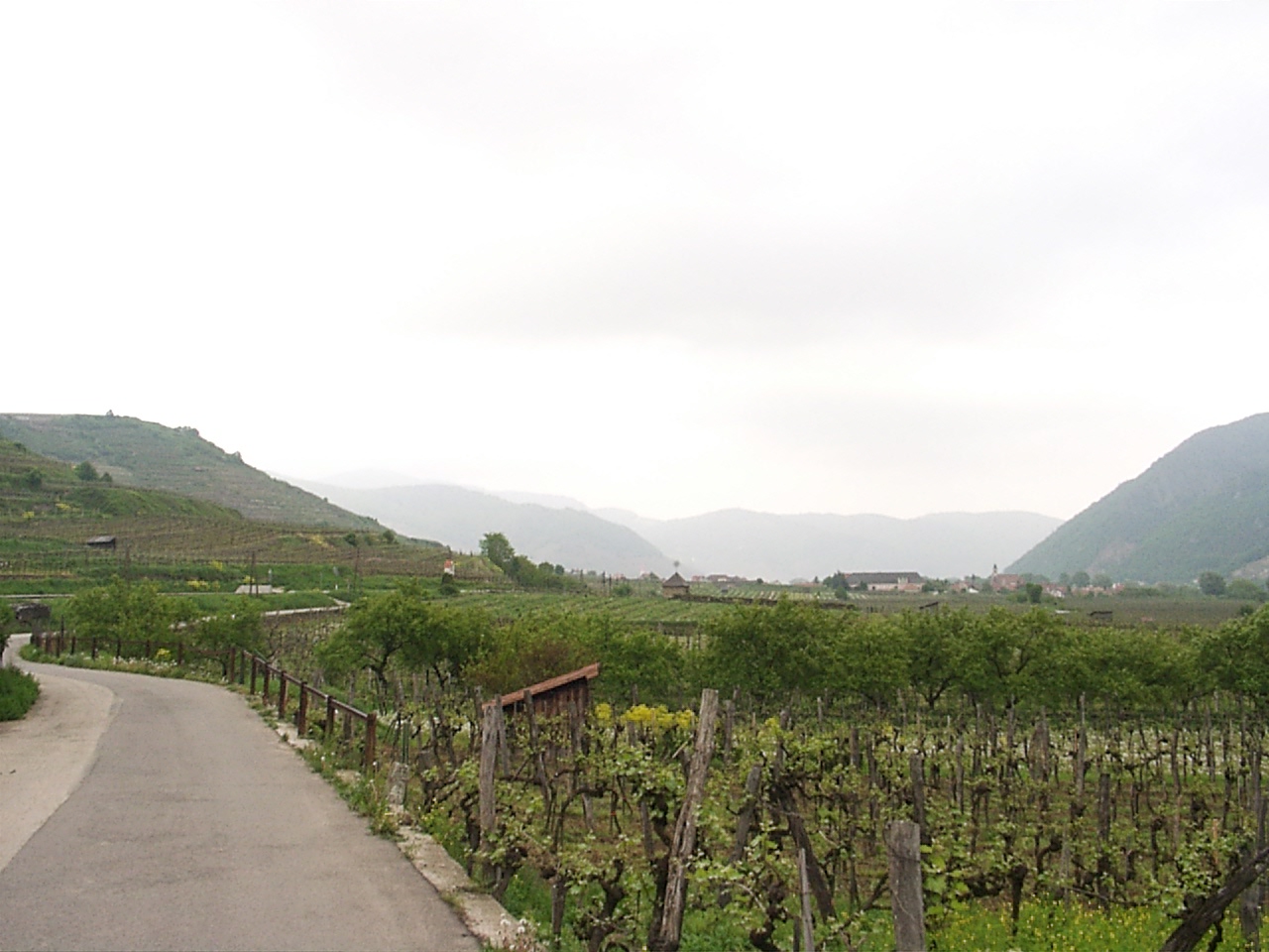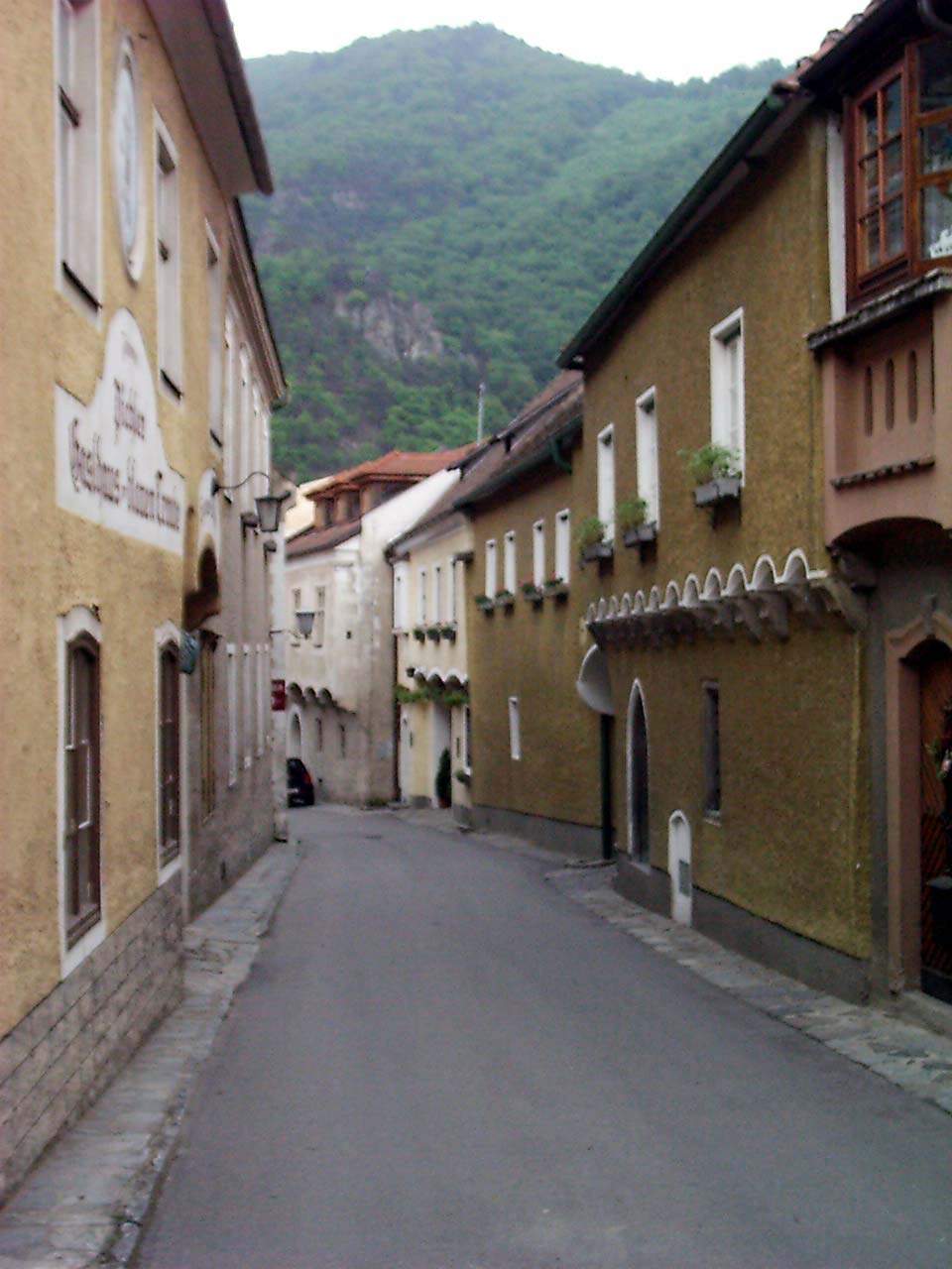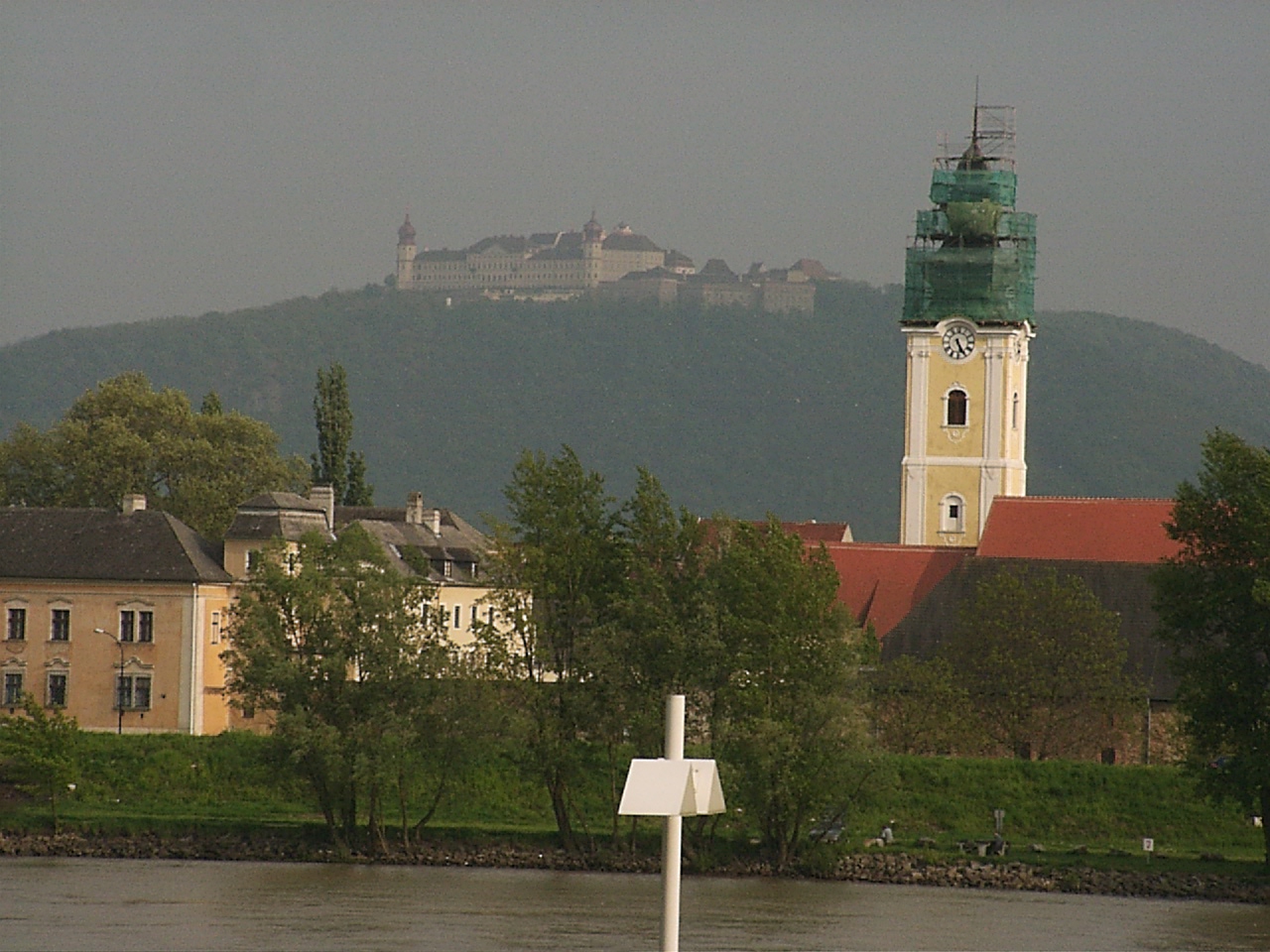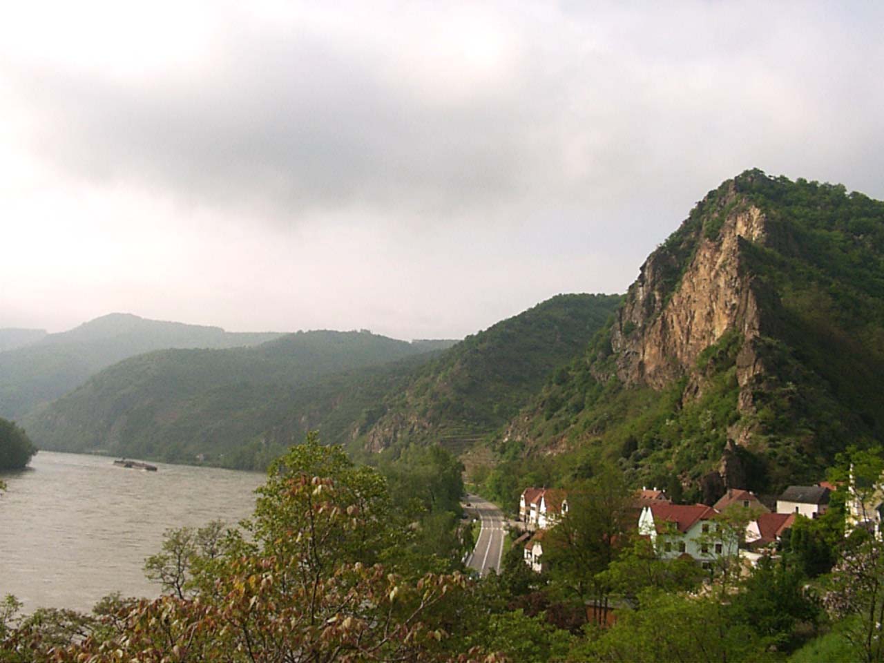 ebed utan valahogy eltokoresztuk az idot, de talan nem veletlenul... a Melk es Krems kozotti szakasz talan az egyik legszebb resze a dunamenti turanak. A folyo ket partjan magas, sziklakkal teli hegyek emelkedtek. a baloldalon a hegybe kovekkel kialakitott sziklateraszokon szolot termelnek. a kis varoskak egymast erve kovettek egymast. a hegytetokon varromok illetve templomok emelkedtek a magasba. nehany eleg misztikusan nezett, ki az alacsony felhokbe burkolodzva. bar kremshez kozeledve lassan a nap is kisutott...