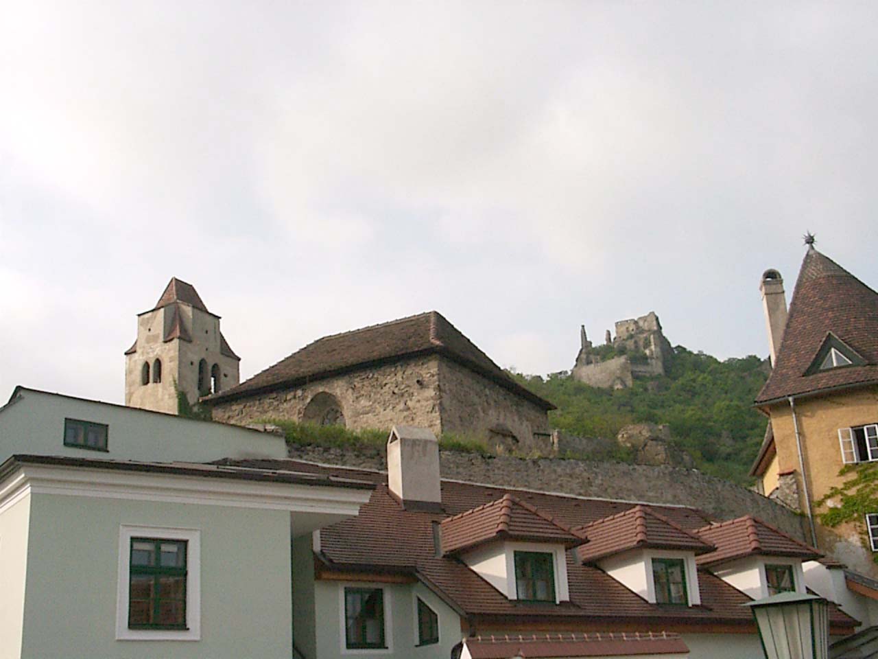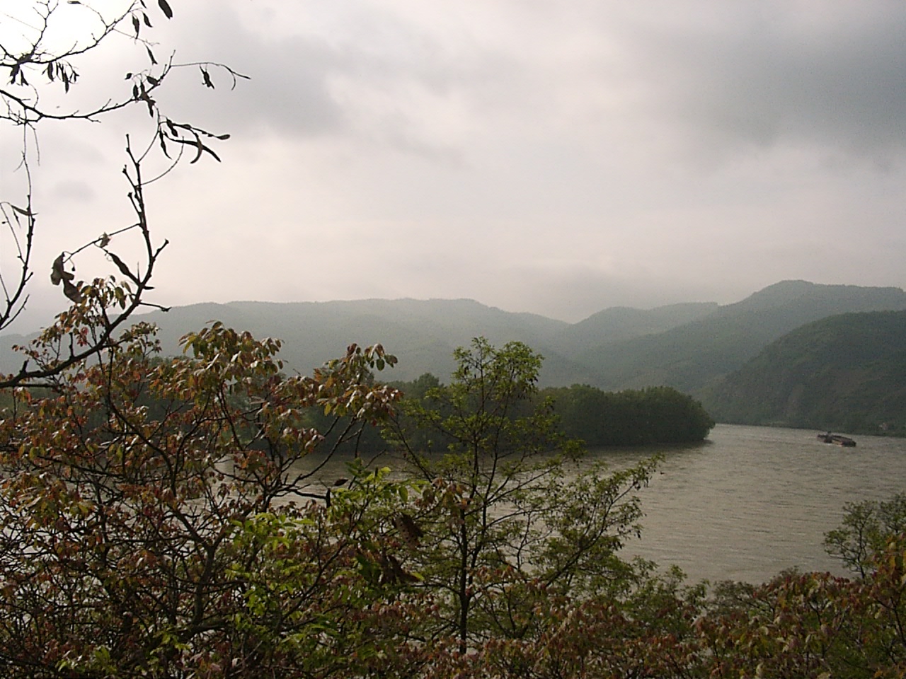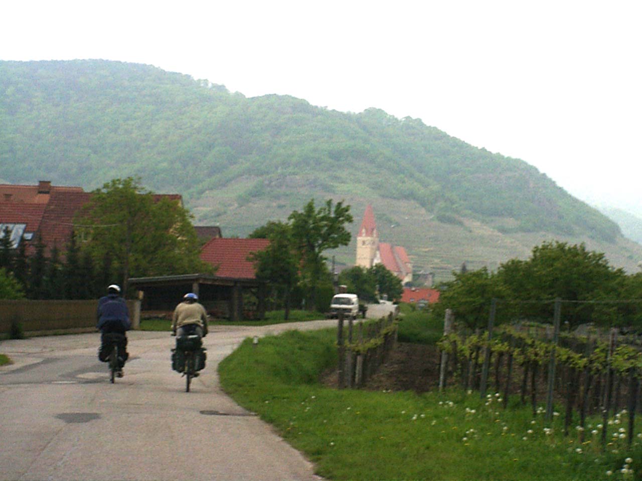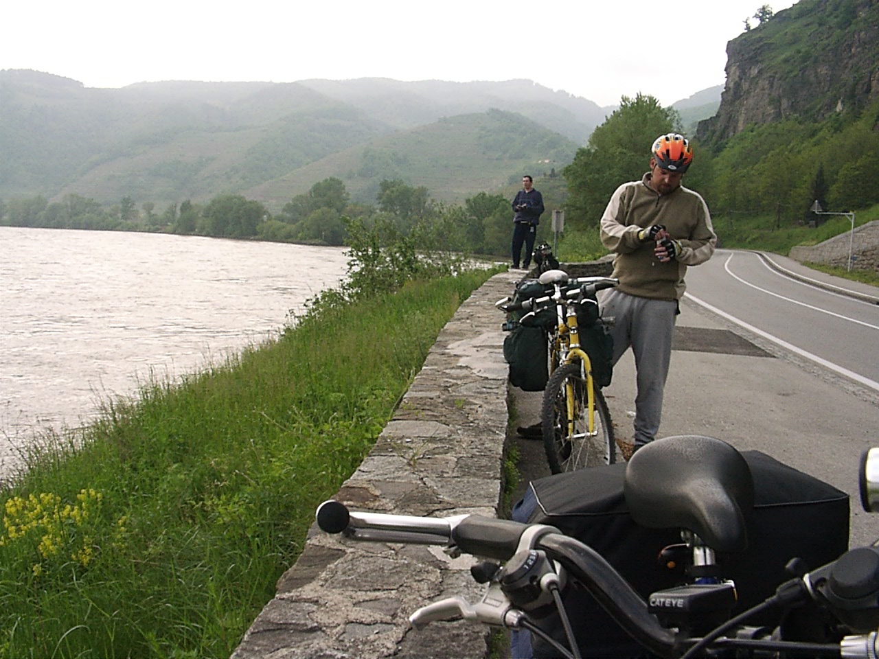 ebed utan valahogy eltokoresztuk az idot, de talan nem veletlenul... a Melk es Krems kozotti szakasz talan az egyik legszebb resze a dunamenti turanak. A folyo ket partjan magas, sziklakkal teli hegyek emelkedtek. a baloldalon a hegybe kovekkel kialakitott sziklateraszokon szolot termelnek. a kis varoskak egymast erve kovettek egymast. a hegytetokon varromok illetve templomok emelkedtek a magasba. nehany eleg misztikusan nezett, ki az alacsony felhokbe burkolodzva. bar kremshez kozeledve lassan a nap is kisutott...