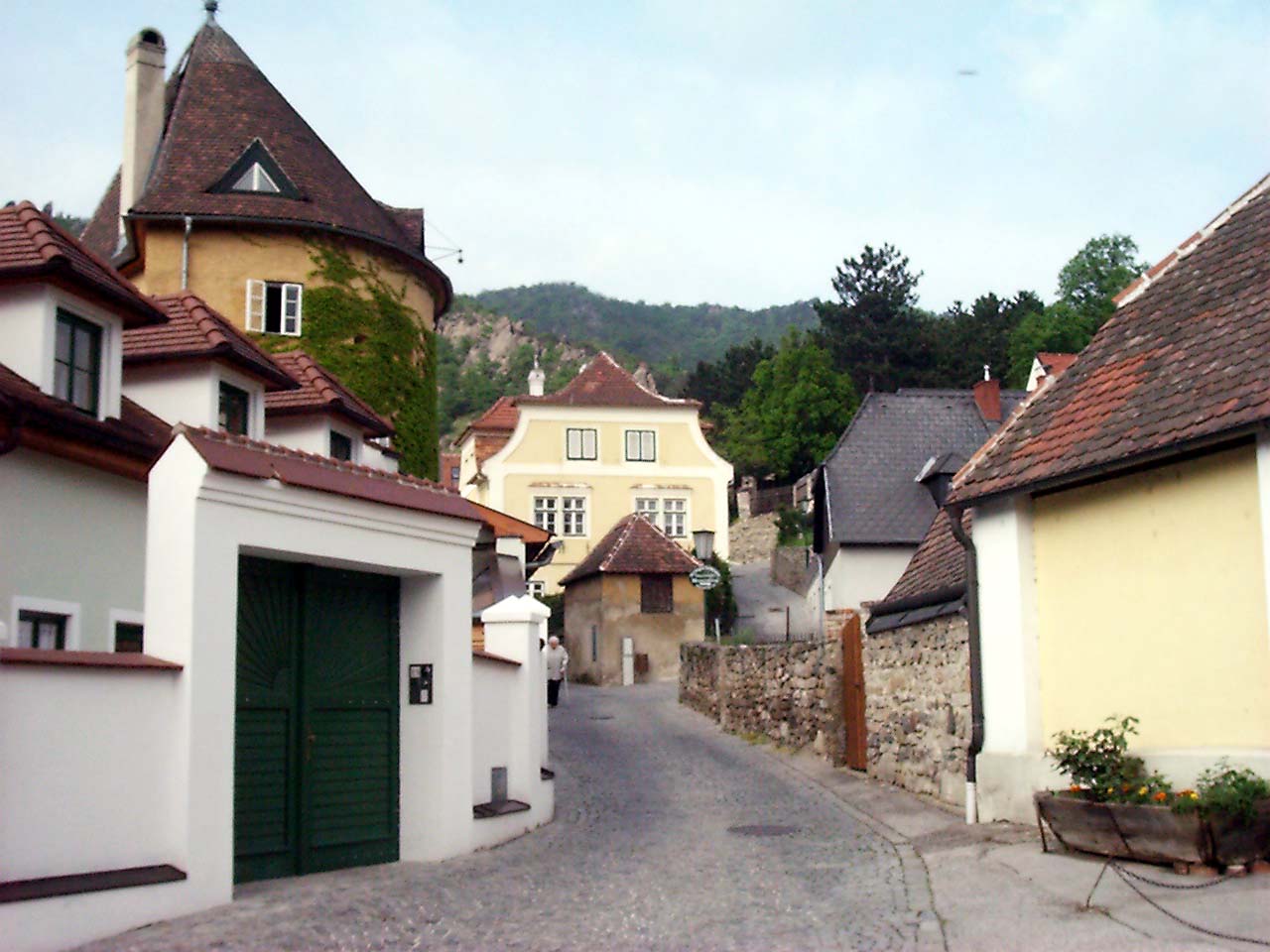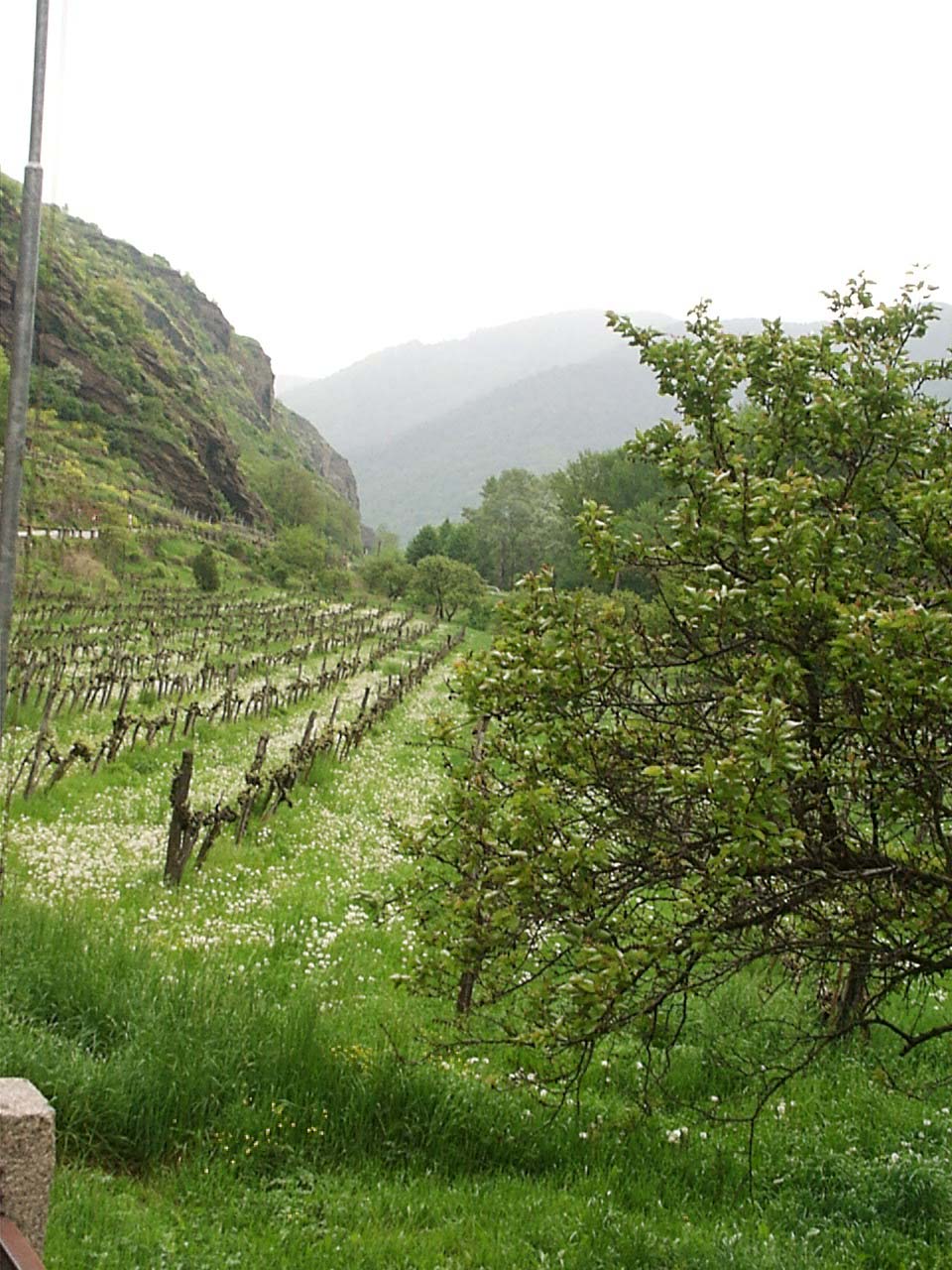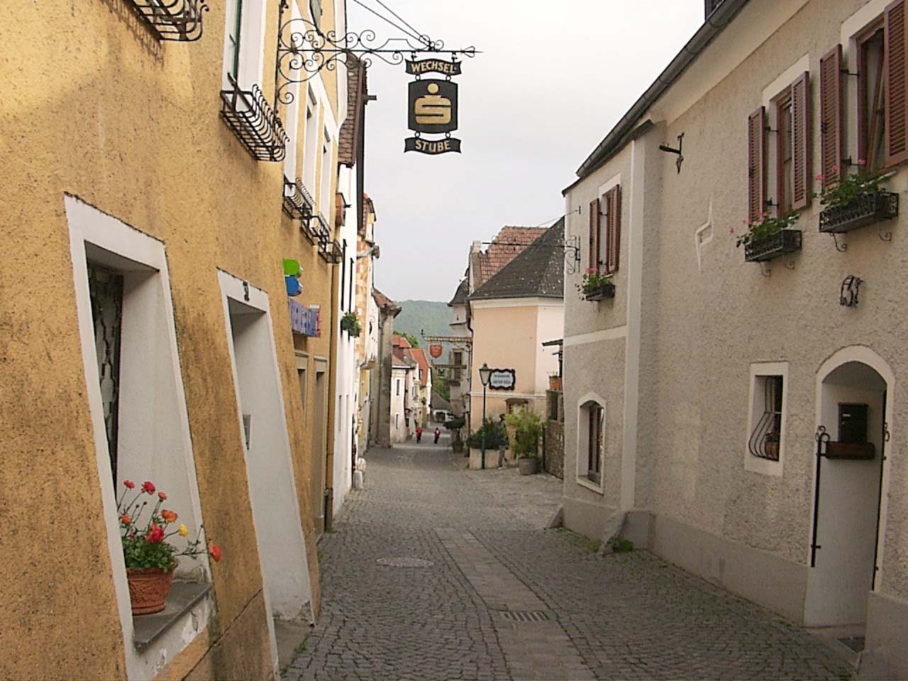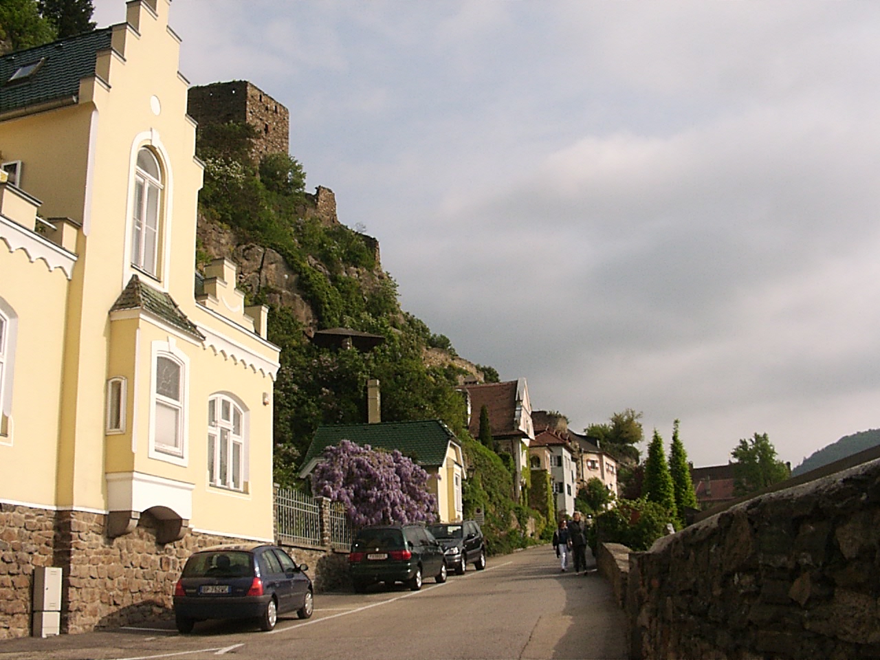 ebed utan valahogy eltokoresztuk az idot, de talan nem veletlenul... a Melk es Krems kozotti szakasz talan az egyik legszebb resze a dunamenti turanak. A folyo ket partjan magas, sziklakkal teli hegyek emelkedtek. a baloldalon a hegybe kovekkel kialakitott sziklateraszokon szolot termelnek. a kis varoskak egymast erve kovettek egymast. a hegytetokon varromok illetve templomok emelkedtek a magasba. nehany eleg misztikusan nezett, ki az alacsony felhokbe burkolodzva. bar kremshez kozeledve lassan a nap is kisutott...