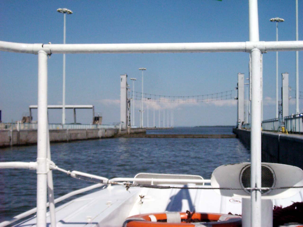 Mar egy oraja elindultunk haza a Vocsok IV nevu szarnyashajoval. A 280 km-t alig teszi meg gyorsabban mint mi ... cirka 5 ora alatt :) ... eppen most kerultunk ki ket ozet a Duna kozepen!! ...