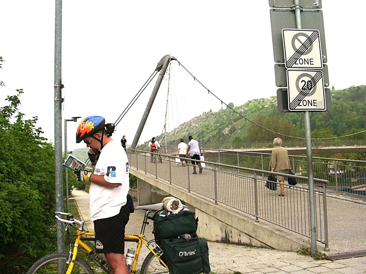az eddig ment szakaszon a taj szepse talan karpotolta a tegnapi bosszusagokat. Az ut a dunaparton ment vegig, lagy dombokkal ovezve, amikbol neha-neha meredek sziklafalak bukkantak elo. Nehanyszor hihetetlen desingu hidon keltunk at, illetve Regensburg elott volt egy hatalmas magasba ivelo hid.